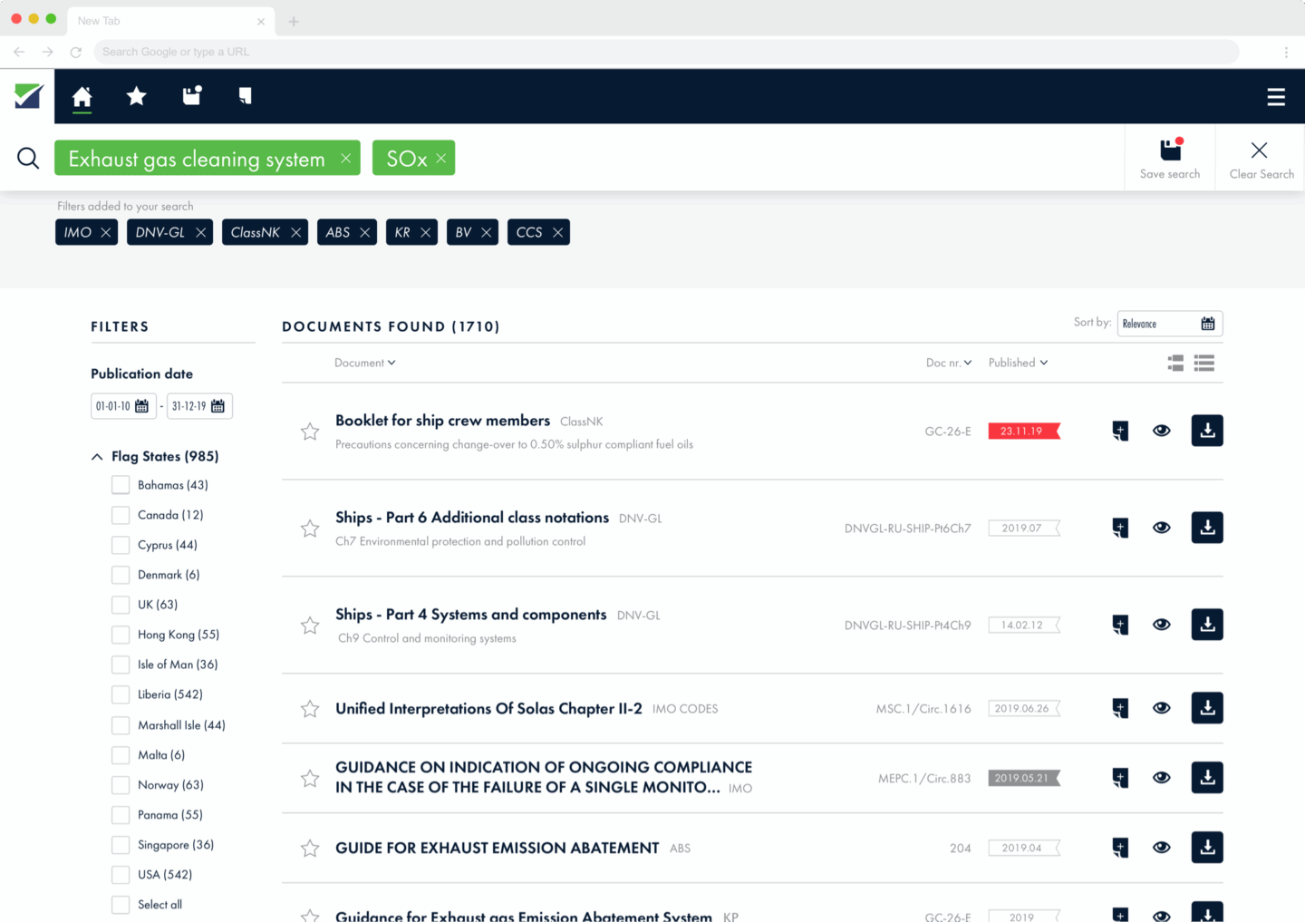 Access a vast digital library of more than 80,000 regulations from the IMO, flag states, class societies, and beyond. Continuously updated and available online and offline, so vessels and shoreside teams always have the complete picture.