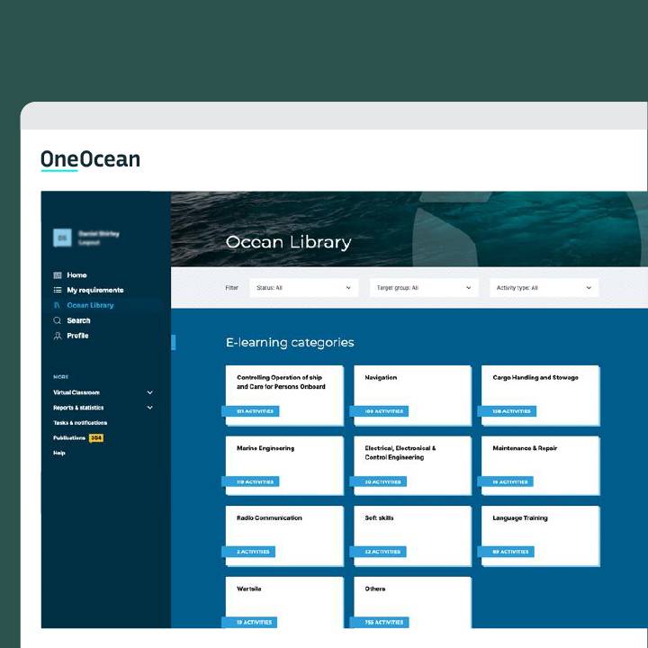The Ocean Learning Platform’s digital library offers crew relevant and engaging e-learning courses, designed by subject matter experts and in collaboration with industry partners, that keeps them compliant and up to date with the latest regulations, technologies, and best practices.