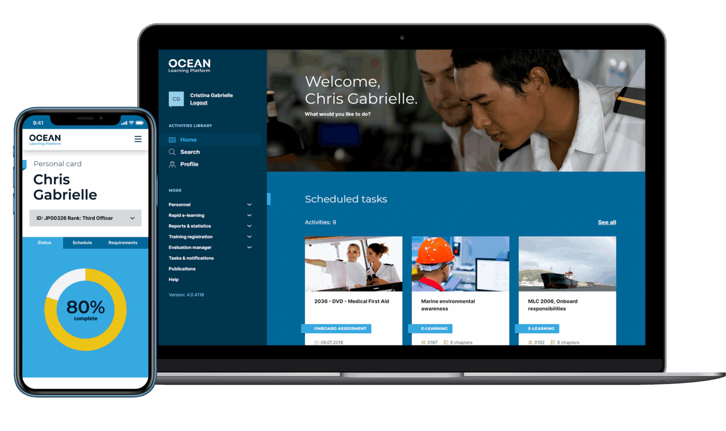 The Ocean Learning Platform is an enterprise level maritime learning management system designed to unite shore based and onboard training initiatives, online and across mobile devices. It delivers blended learning, assessment and competency management solutions that completely connect e-Learning and hands-on activity to improve knowledge, skills and behavioural development.