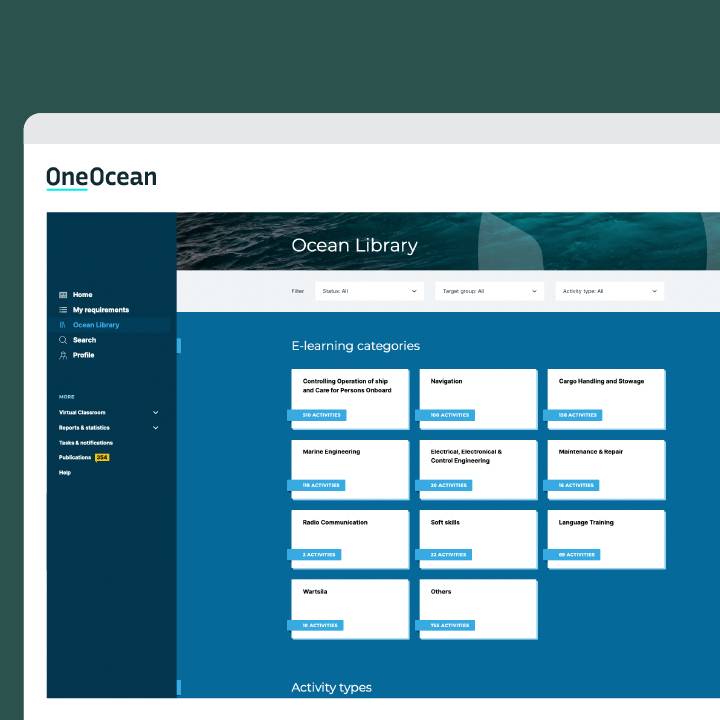 The Ocean Learning Platform’s digital library offers crew relevant and engaging e-learning courses, designed by subject matter experts and in collaboration with industry partners, that keeps them compliant and up to date with the latest regulations, technologies, and best practices.